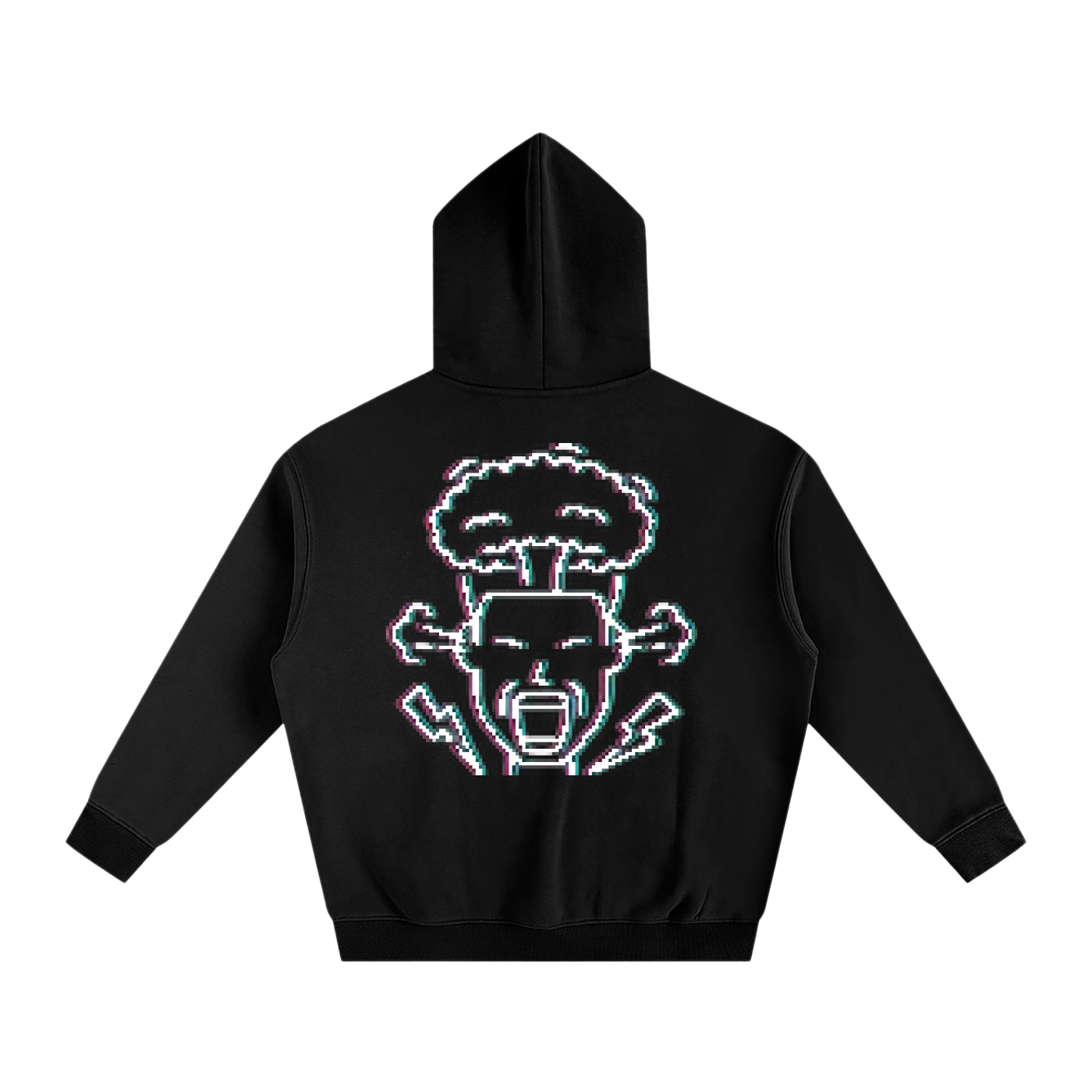 The Boutiq Glitch Blinker Boy Hoodie blends bold disruption with everyday comfort, featuring a signature Glitch BOUTIQ Pixelmark graphic on the front and a Glitch Blinker Boy print on the back. Made from 100% pre-washed cotton for a soft, no-shrink fit, this unisex black hoodie includes a classic kangaroo pocket and delivers standout style with effortless wear.